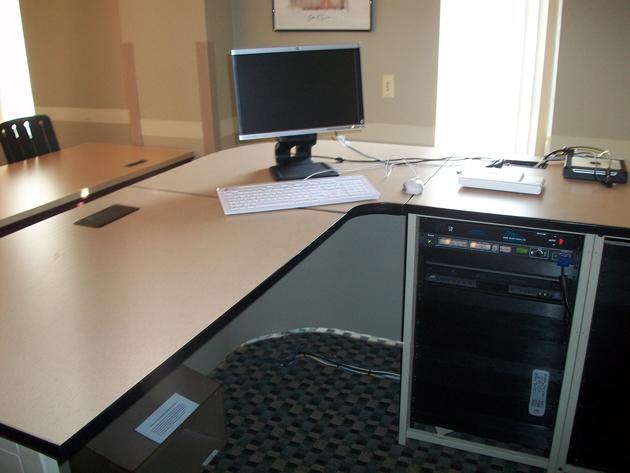 A high resolution camera that can display transparencies, books, papers, flat art work and three-dimensional items through the video projector onto the projection screen in the classroom.