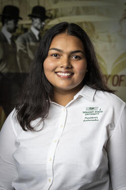 President's Ambassadors serve as official representatives of Wright State University and the Office of the President at various Wright State presidential dinners, meetings, and events. President's Ambassadors also give guided tours and meet with community leaders, alumni, donors, and dignitaries. They are the premier students who are committed to Wright State and play a vital role in the reputation of the university.