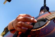 Issac Buschur, a musician and 2021 Wright State alumnus who works as an ER nurse at Dayton Children’s, entertained students, faculty and staff during the annual Laker Lawn Party.