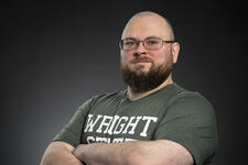 Liam Stalker, a Ph.D. student in human factors and industrial/organizational psychology at Wright State, researches eye movement to explore its impact on focus, productivity and efficiency.