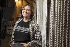 Design and technology student Anna Hunter works behind the scenes designing sets, making props and managing the stage during Wright State theatre productions.