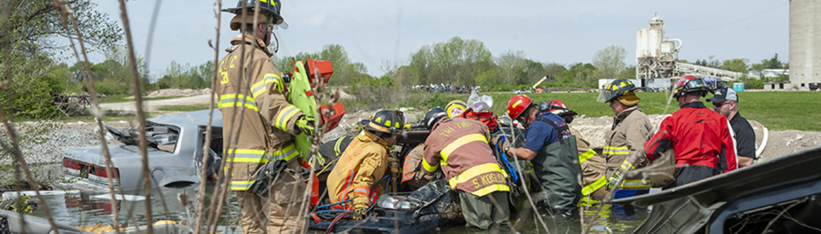 - Complex Vehicle Mishap—This is staged per the training requirement using buses, cars, heavy equipment (cement mixer) etc.