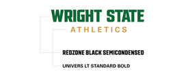 Redzone is the primary display typeface for Wright State Athletics. “Display” means it is appropriate only for high-impact text in small amounts, such as headlines, titles, banners, posters, print and digital ads, merchandise, and uniforms. It should never be used for large bodies of copy.
