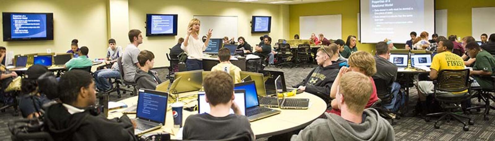 - Lecture classes with occasional meeting(s) in computer labs or other specialized rooms