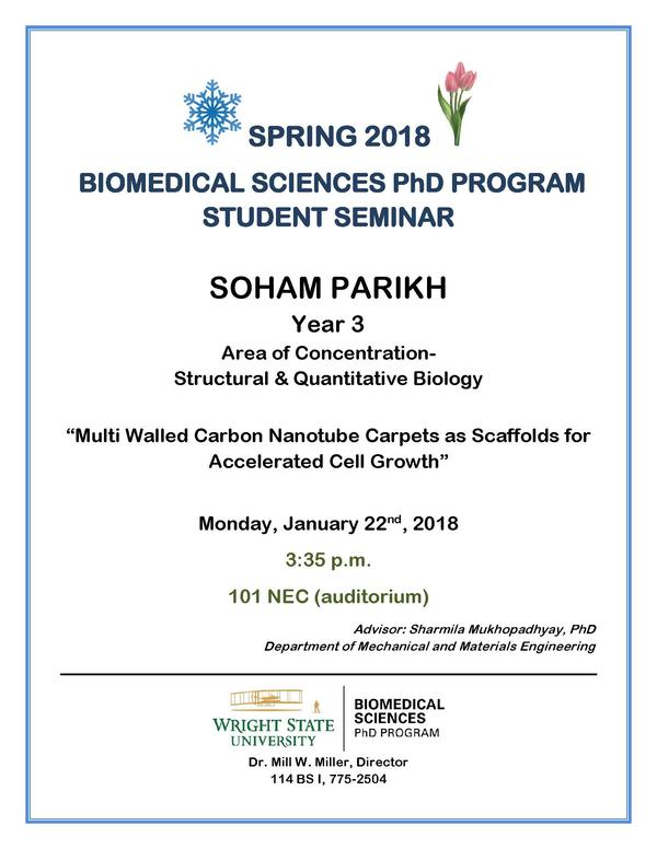 Biomedical Sciences PhD Program Student Seminar “Multi Walled Carbon Nanotube Carpets as Scaffolds for Accelerated Cell Growth”