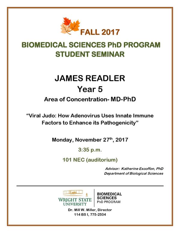 Biomedical Sciences PhD Program Student Seminar "Viral Judo: How Adenovirus Uses Innate Immune Factors to Enhance its Pathogenicity"