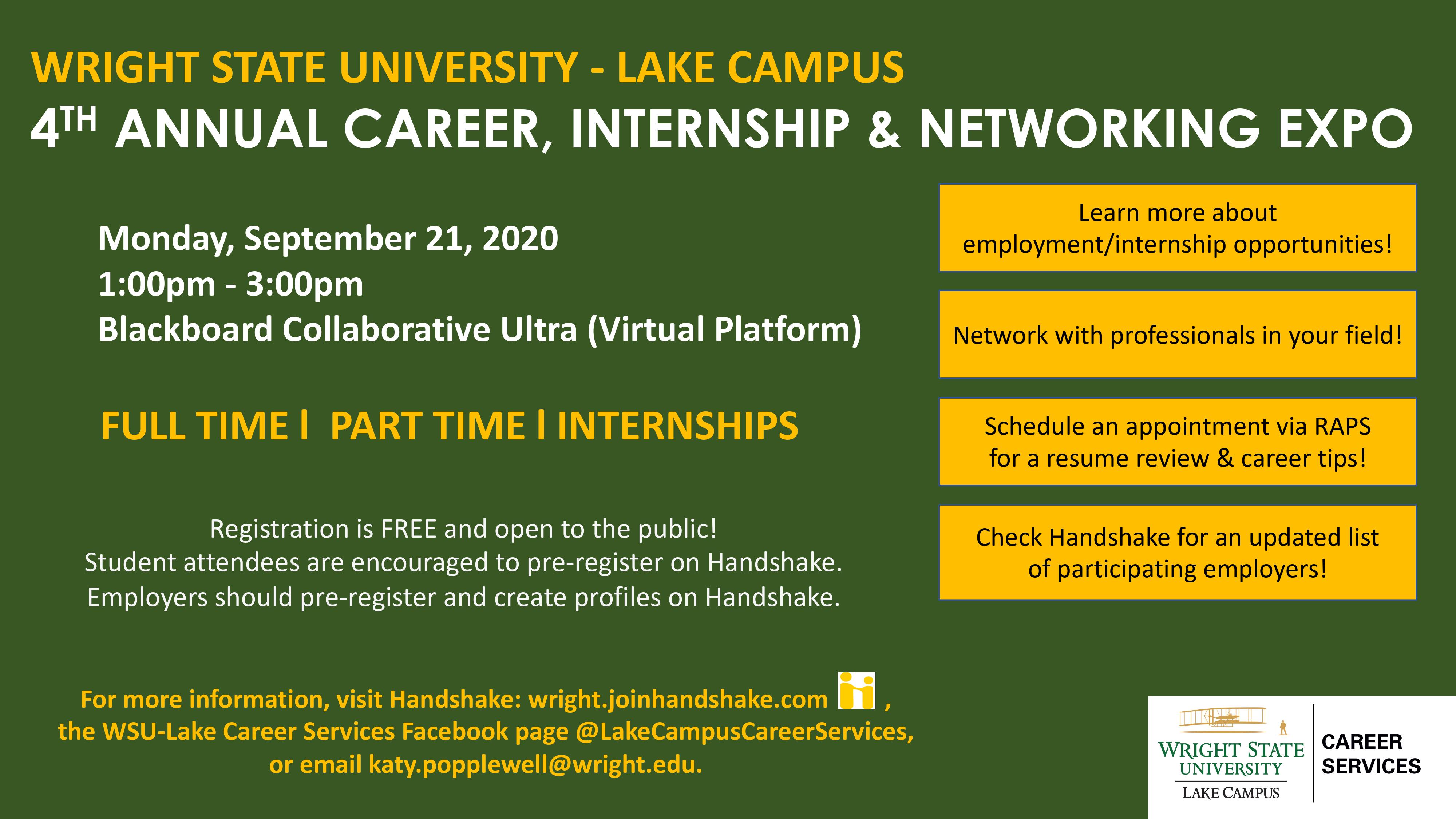 Guest Link for Students/Participants to attend the Career Expo: https://us.bbcollab.com/guest/825451afd0f54d518c046d1f0ae4fab9