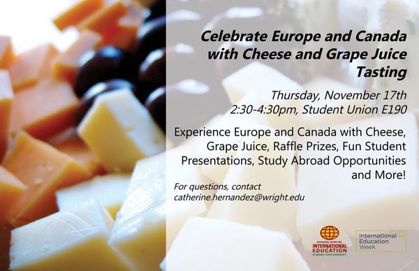 Experience Europe and Canada with cheese, grape juice, raffle prizes, fun student presentations, Study Abroad opportunities and more!