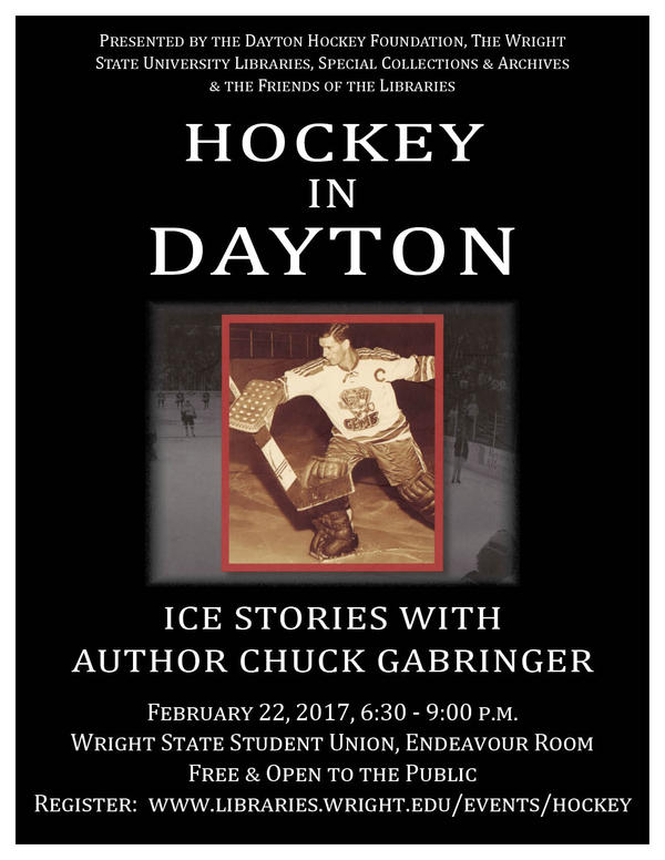 Join us for an evening of Dayton ice hockey history with local author Chuck Gabringer. This event is free & open to the public and will take place in the Endeavour Room in the Wright State University Student Union. Free parking will be available in Visitor's Lot 2 by the Student Union.