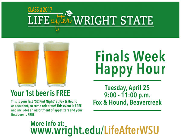 There is a light at the end of the tunnel! Come unwind from finals week with a beer and appetizers! This is your last "$2 Pint Night" at Fox & Hound as a student—so come celebrate!