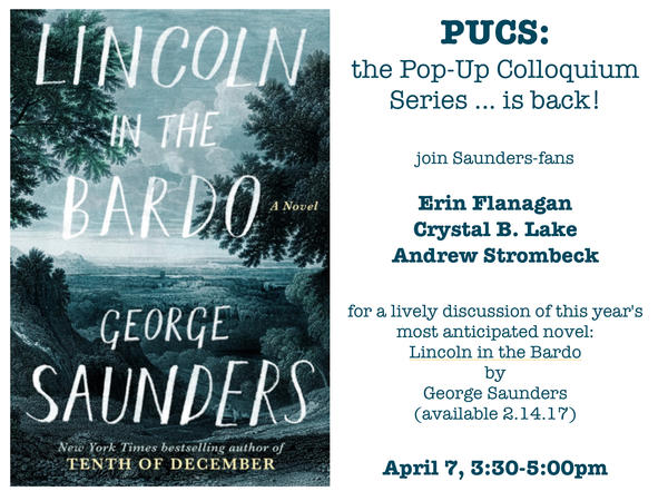 Join profesors Flanagan, Lake, and Strombeck in the Department of English for a lively discussion of the year's most anticipated novel: Lincoln in the Bardo by George Saunders.