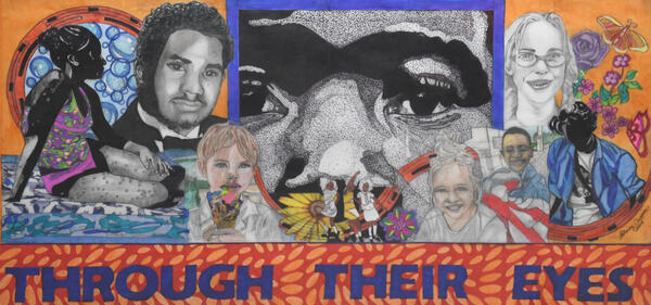 Image Credit: Through Their Eyes, Mixed Media on Mixed Media Paper, 44" x 24", 2025, by Shirley Tucker