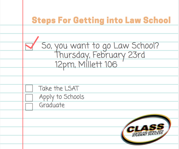Are you thinking about going to law school in the future? Not sure how to get started? We can help! This is your chance to learn what it takes to put together a competitive application. This program is presented by the Workforce Development Division of (CLASS), the Center for Liberal Arts Student Success, and is part of the Liberal Arts Student Career Success Series.