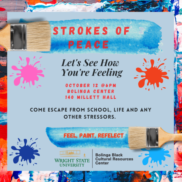 As a mid-semester mental break, come join the Bolinga Center in putting your feelings of the semester thus far on canvas. All painting materials will be providedĀ freeĀ of charge and you can take the art home with you!