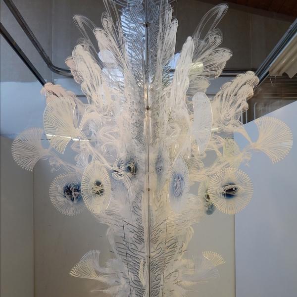 Wright State’s Robert and Elaine Stein Galleries is pleased to present Susan Chrysler White’s Like Oil for Water. White’s most recent sculptures evoke excess, in both scale and their highly decorative nature. Primarily a painter, White’s current three-dimensional work seems to turn her paintings inside-out, exploding them through the use of suspension, plexiglass, and transparent layers of color. Of her work, White says, “Like Oil and Water, the title of the exhibition, speaks to a tension between seduction and repulsion, beauty and danger, come hither but resist.”