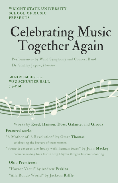 Join the WSU wind bands for a concert at 7:30pm in Schuster Hall at the Creative Arts Center.