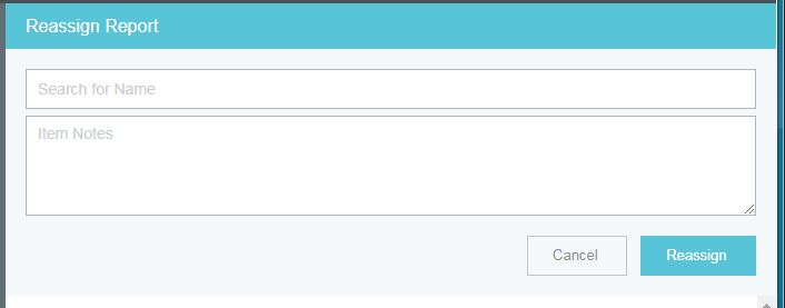 The Reassign Report dialogue box will appear. Click in the Search for Name field, and begin typing the name or search the full list using the scroll bar. Notes may also be added to explain why the report was reassigned.
