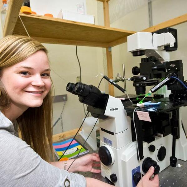 Ellen Ricker, who is working on her master’s degree in anatomy at Wright State, is investigating how opiates stop a person from breathing.