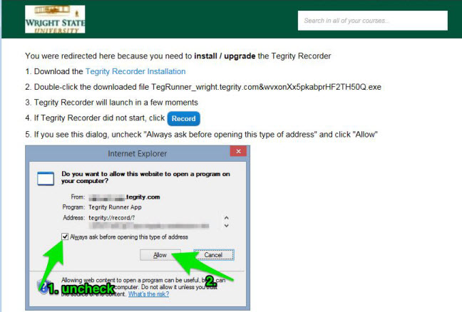 Resolution: To remedy this problem and begin recording, follow these steps BEFORE opening the Tegrity widget in Pilot.