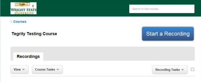 - Choose "Start Recording." This will open the Tegrity Recording Window.