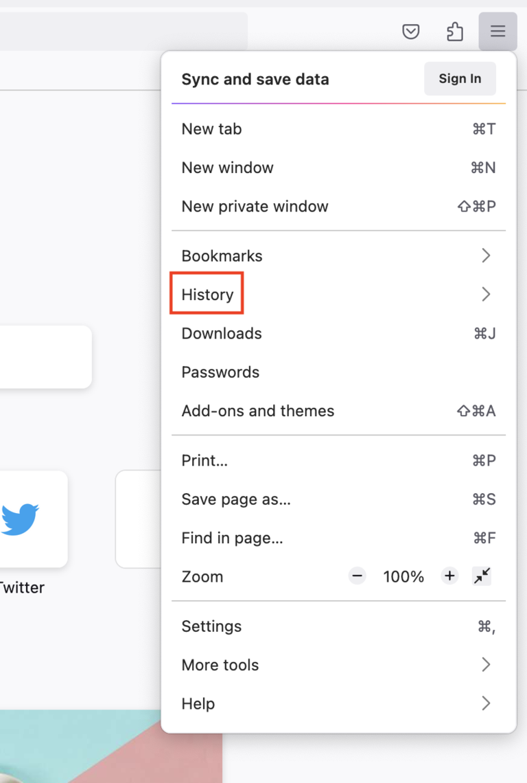 - Select History.