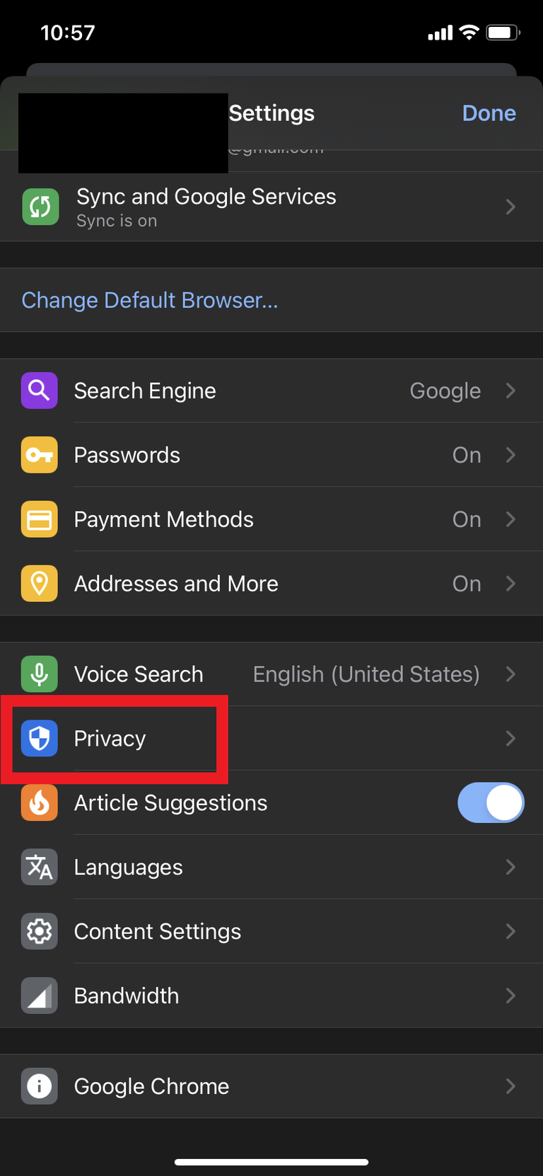 - Select Privacy.