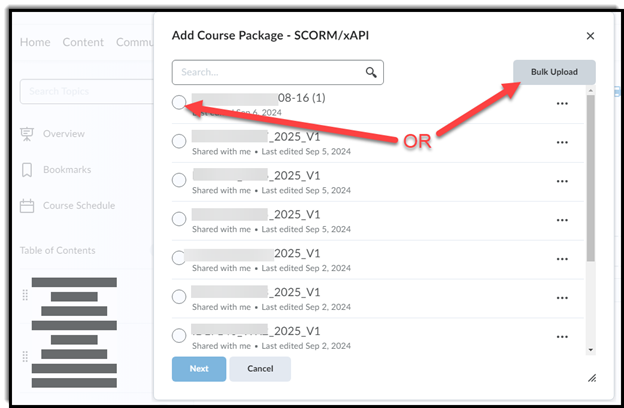 - This will take you back to the Add Course Package page. Find and select the new package and click Next.