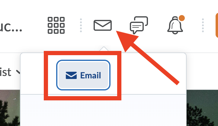 At the top of the course page, click the Envelope Icon near your name at the top-right of the page and select "Email" from the dropdown window.