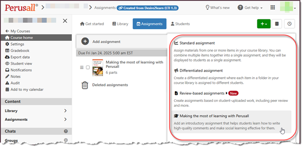 - Select the type of assignment you want to create.
