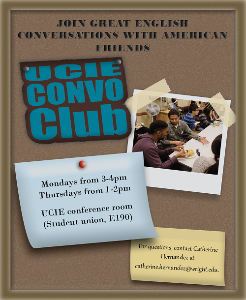 The University Center for International Education (UCIE) is looking for some social media savvy students to share some of their experiences at Wright State with in-coming applicants and admitted students that show you are having a positive experience here in the US and feel welcome at Wright State University. We invite you to share a positive experience at Wright State on your social media account. You could share your experience at a campus event, an exchange with a professor, or just something fun and unique you see around campus. Feel free to share in your native language or in whatever method you think best. Be sure to like and then tag the University Center for International Education (https://www.facebook.com/WSU.UCIE/) to be considered for a weekly drawing of a small prize.