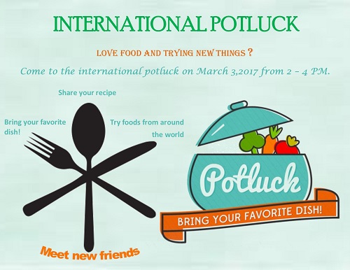 Taste food from all over the world. Bring a food dish or drink representative of your wonderful cultures to share!