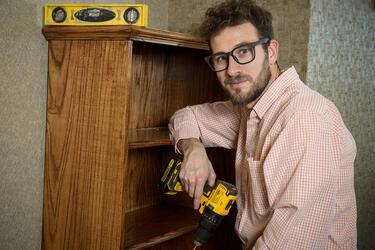 The hand-crafted, three-shelf, oak library was installed in the lobby area of the fourth floor of Millett Hall on April 20. The library is sponsored by Alpha Upsilon Tau, the Wright State chapter of the international English honor society Sigma Tau Delta.