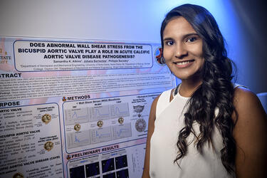 “I was over the moon,” Barrientos said of her third-place finish with her poster titled “The Impact of Abnormal Wall Shear Stress in Acute Calcific Aortic Valve Disease Pathogenesis.” “It reassures me that I am doing something that is important and people are actually seeing it is important.”