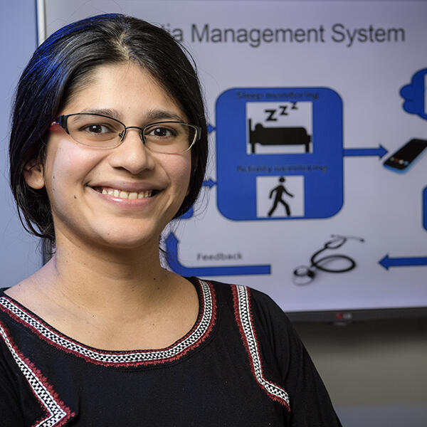 Marquise Crosby, a senior biochemistry and molecular biology major, works as a lab assistant at Wright-Patterson in the Soft Matter Branch of the Air Force Research Laboratory’s Materials and Manufacturing Directorate.