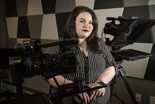 Amanda Harris, a communication studies student who interns in the New Media Incubator, helped beginning French students work on their language skills by producing storytelling videos.