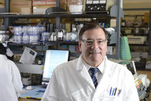 Julian Gomez-Cambronero works with members of his laboratory to find the molecular mechanisms that lead to breast cancer cell growth and invasiveness.