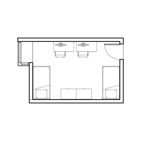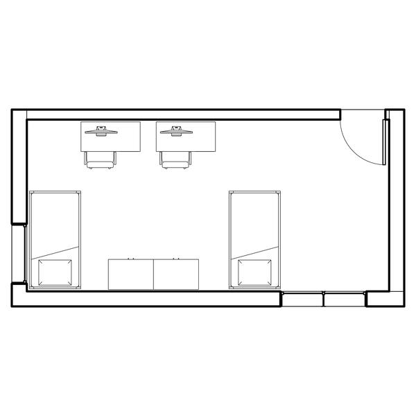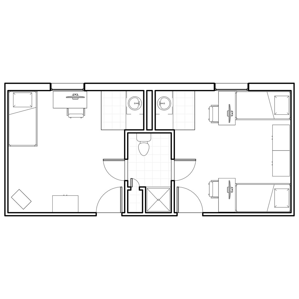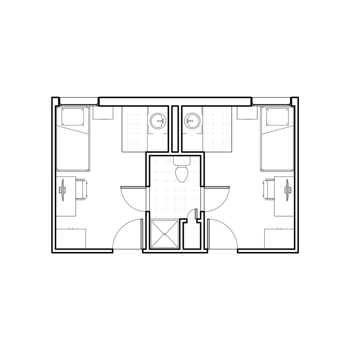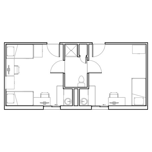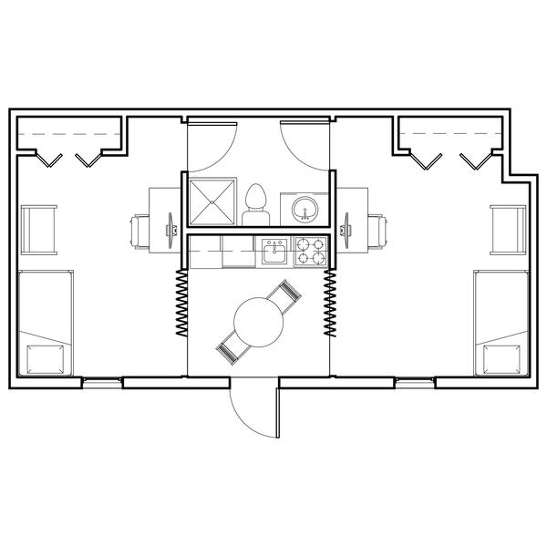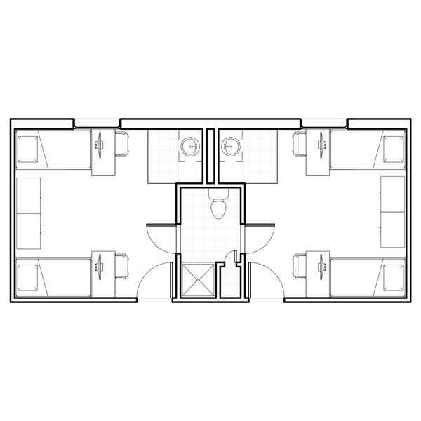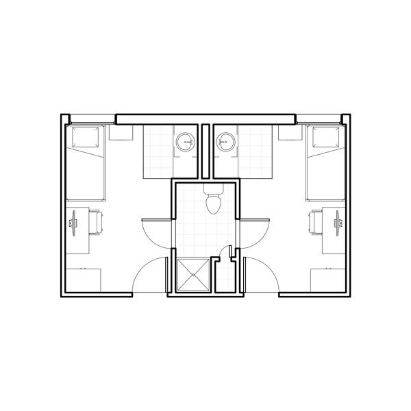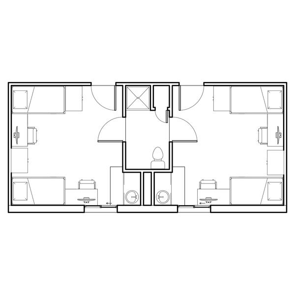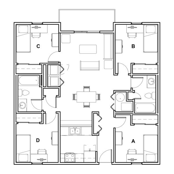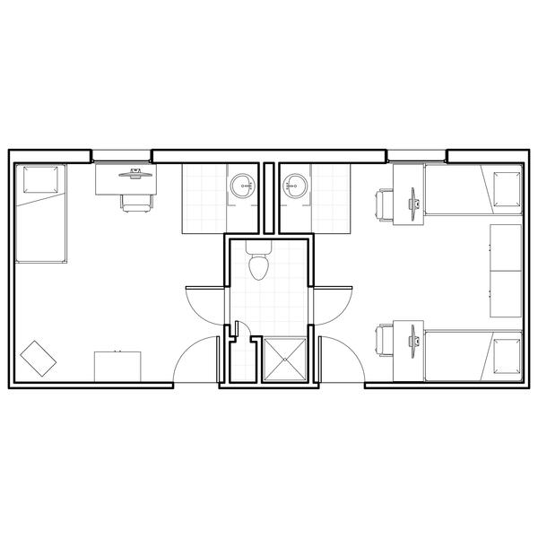 The Woods includes nine fully furnished co-ed halls (Boston, Cedar, Hawthorn, Hickory, Jacob, Laurel, Maple, Oak, and Pine Halls) with suite-style bathrooms. You can live alone, with one roommate, or with two roommates.