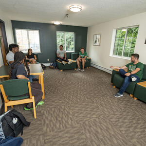 The Woods is a group of nine fully furnished co-ed residence halls (Boston, Cedar, Hawthorn, Hickory, Jacob, Laurel, Maple, Oak, and Pine Halls) that offers dorms with suite-style bathrooms for first-year students. You can live alone, with one roommate, or with two roommates. Dining plans are required. All students are eligible to live in The Woods. The Woods is located near the basketball and volleyball courts and offers several living learning communities. The Woods is also a short walk to campus, putting you close to your classes, events on campus, and food.