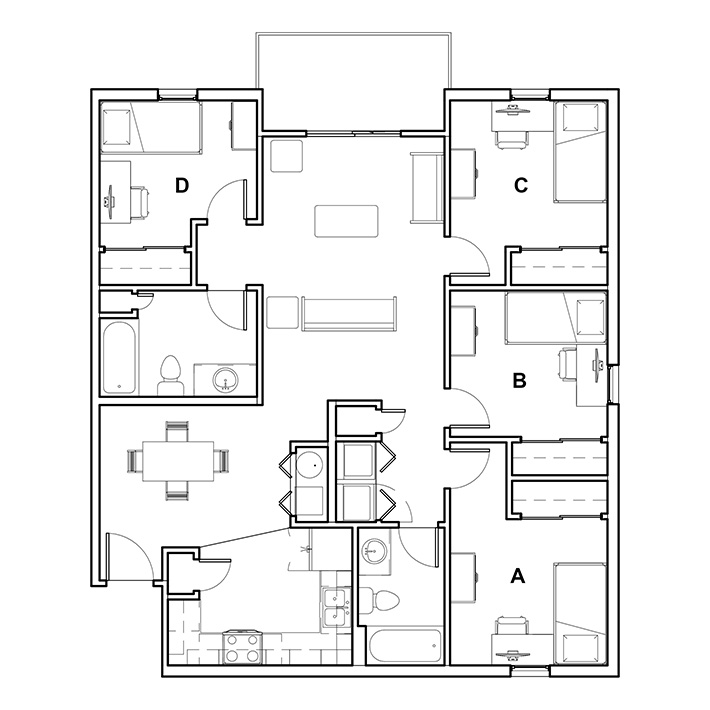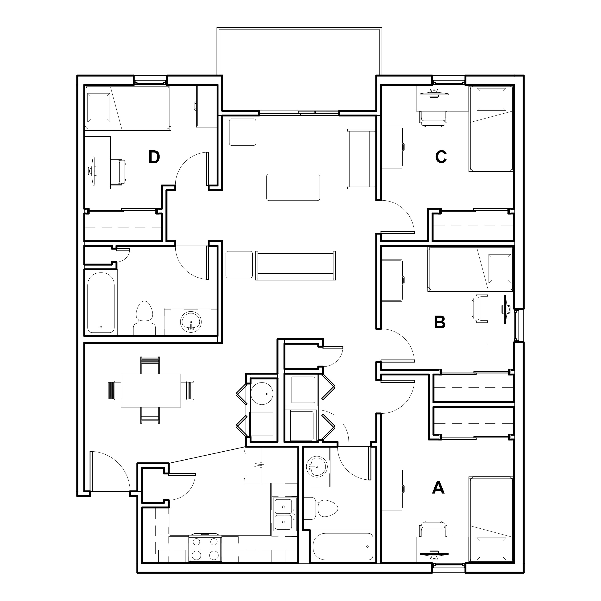 University Park Apartments are furnished co-ed four-bedroom and two-bathroom apartments. Students who have lived in housing for two semesters, transfer students, students who are of sophomore or higher class rank, or students at least 21 years old are eligible. Dining plans are optional. If you have earned college credits while attending high school in the College Credit Plus, you may not be eligible to live in apartment communities. University Park Apartments offer a full kitchen, a living room, and a washer and dryer in the unit.