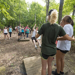 The Challenge Course is designed to offer experiential learning opportunities for groups and individuals through games, initiatives, and the Tower and Low Ropes elements. By working through challenges on the course, success or failure can be transferred to real-life experiences at school, work, home and with friends.