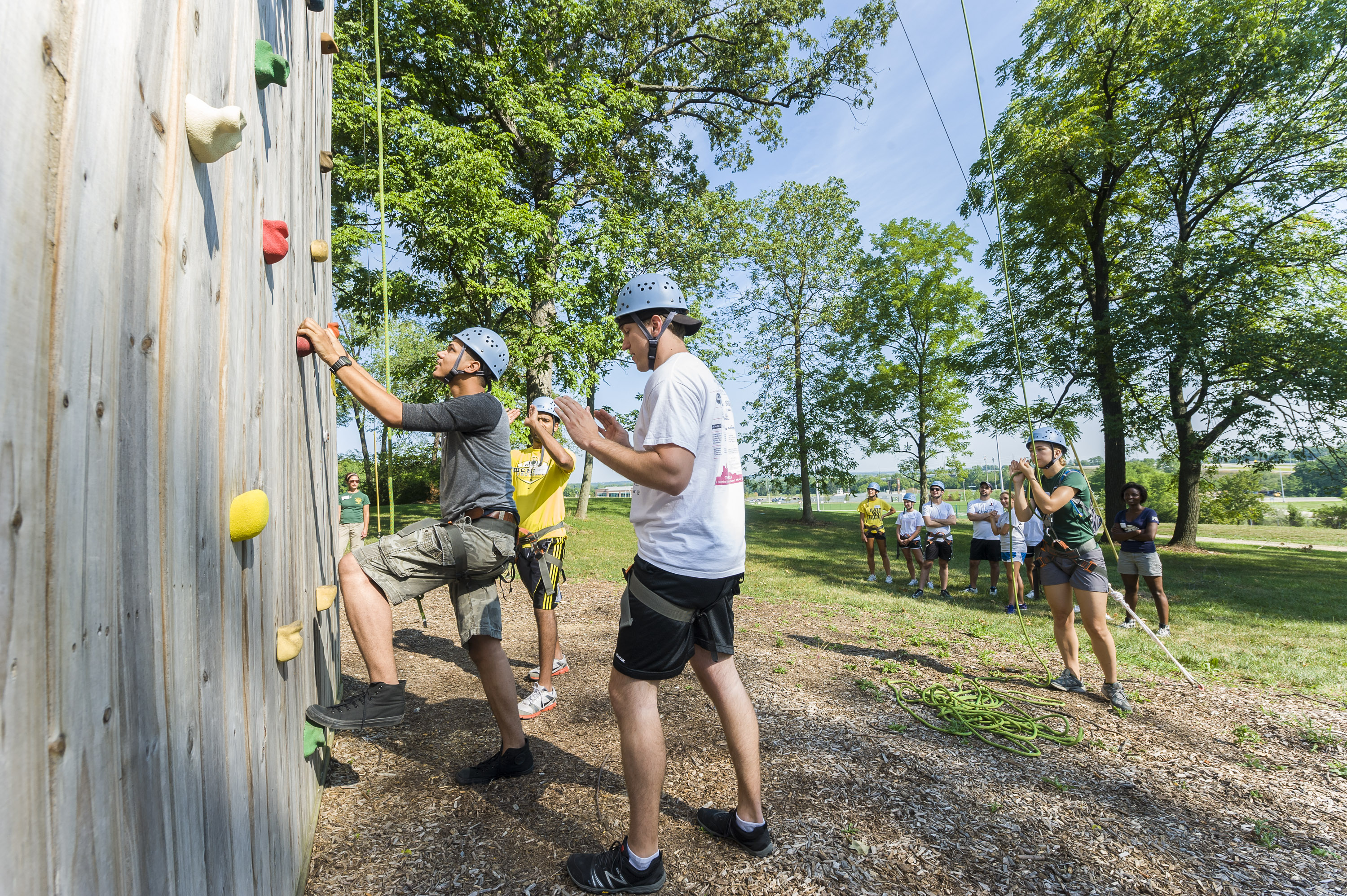 Campus Recreation is committed to providing exceptional facilities, programs, and services to create recreational opportunities that promote a healthier and happier Wright State family. The Challenge Course creates an environment that is supportive, productive, and enriching. It works to facilitate the development of personal and professional potential and outstanding leadership skills. The Challenge Course promotes self-discovery, the development of social skills, mutual respect, fair play, and sportsmanship while encouraging friendship and camaraderie. Positive relationships are built on laughter while celebrating successes and accomplishments.