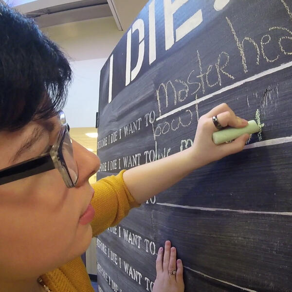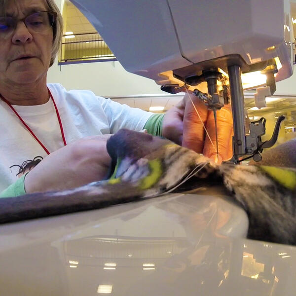 Fleece blankets for sick and traumatized children were cut, tied and labeled by Wright State students, faculty and staff on April 5 in the Student Union Atrium.
