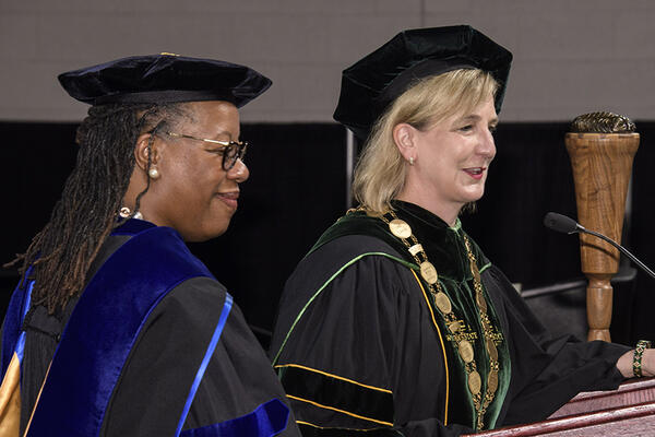 During her first year at Wright State, President Cheryl B. Schrader said, she will work to achieve financial stability, administrative transparency and campus conversation.