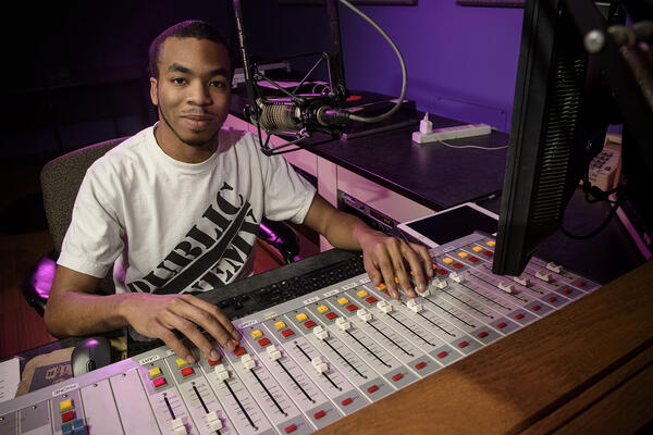Stacy Worley II, a liberal studies major at Wright State, plays hip-hop during his weekly show on the student-run radio station, WWSU.