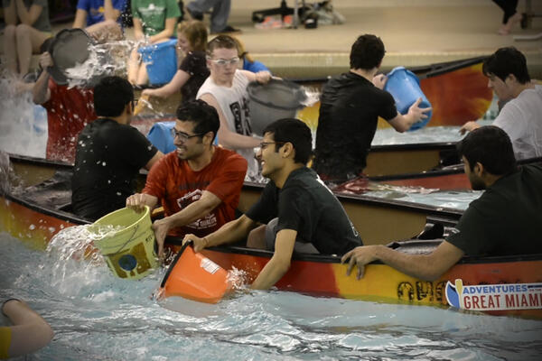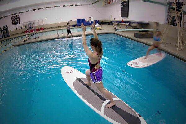 Wright State Campus Recreation's stand-up paddleboard yoga class offers students an added challenge: yoga on water.