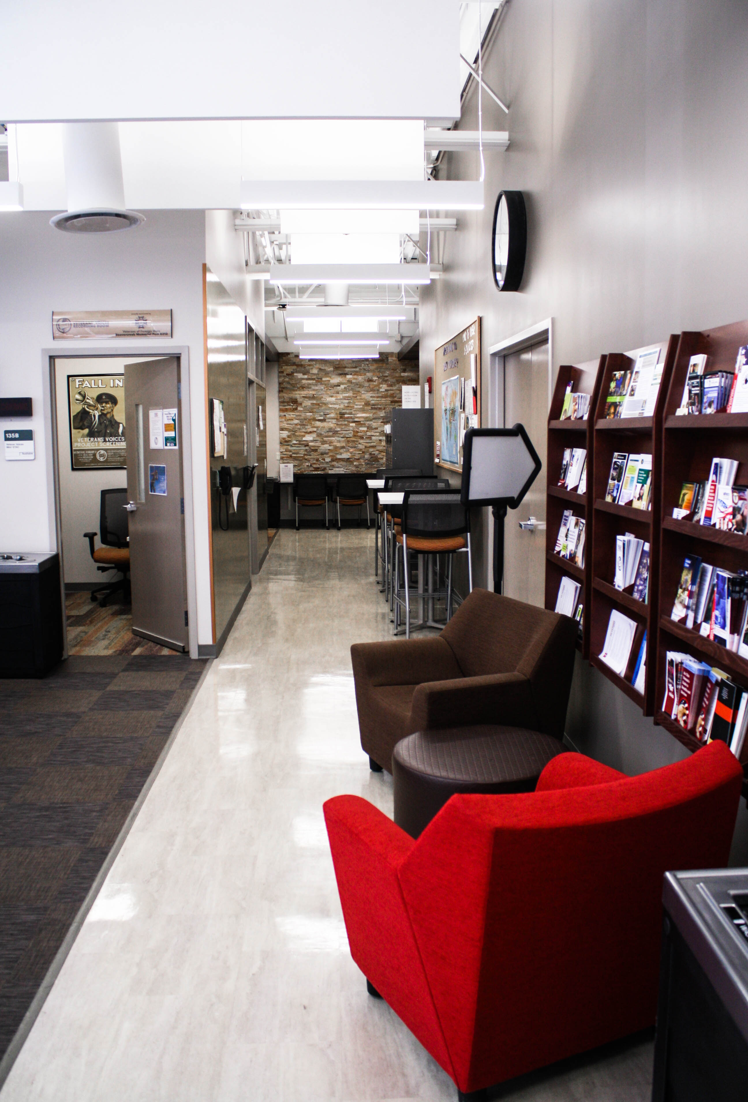 The Veteran and Military Center (VMC) occupies a 4,500-square foot facility in 131 Allyn Hall. Of that, 1,800 square feet are dedicated to a student study and lounge area.
