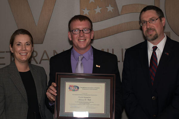 Student veteran Adrian Hill honored by Wright State officials as both the Ohio and university Student Employee of the Year.