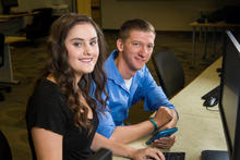 Derek Desentz, a junior computer science and computer engineering major at Wright State, hones his coding skills as an intern at the Air Force Institute of Technology.