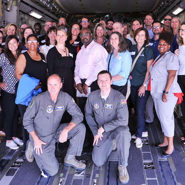 Wright State faculty, staff and administrators were part of a delegation of higher education representatives who toured Wright-Patterson Air Force Base.
