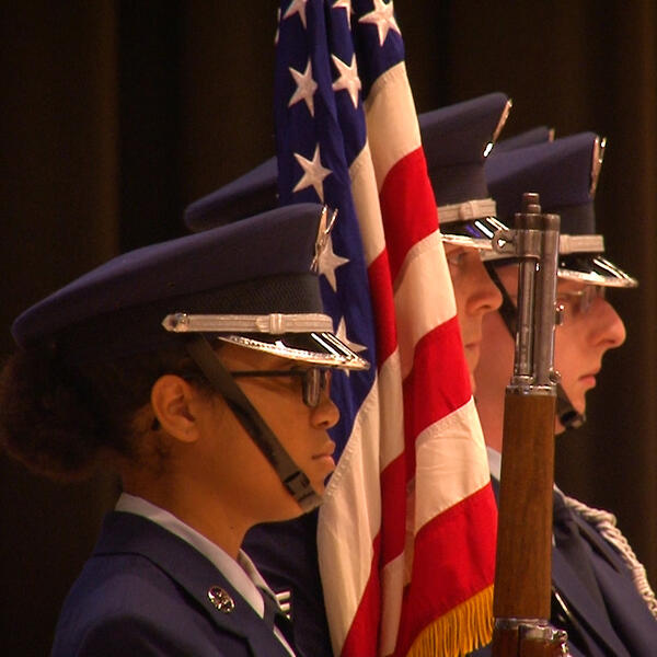 C-17, Honor Guard, MIA lab part of Wright-Patterson tour for Wright State officials